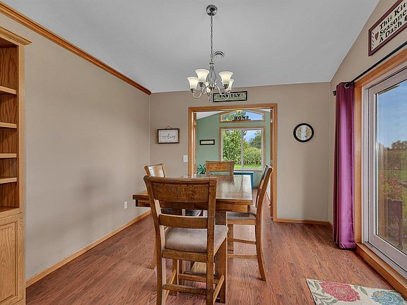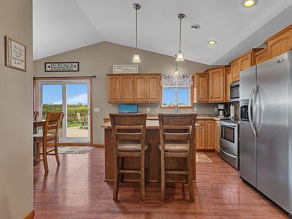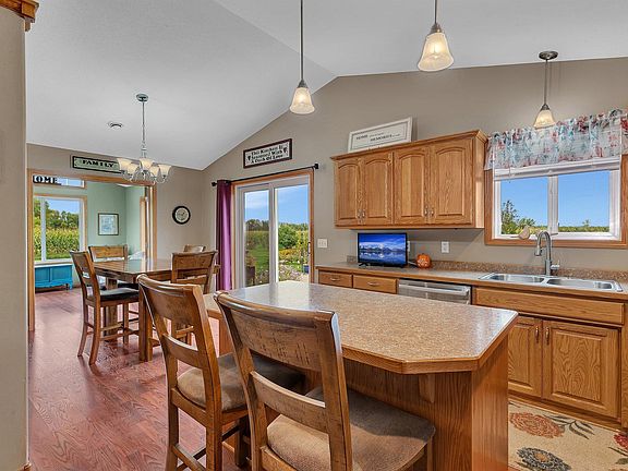 Are you looking for one level living and privacy? Look no further! This one level home offers 3 bedrooms, 3 baths, 1800+ square feet all nestled on 2.5 acres of lush green irrigated lawn! Gorgeous oak cabinetry and trim throughout, 6 panel doors, french doors lead to 3rd bedroom/den. The kitchen offers stainless steel appliances, center island, and walk-in pantry. From the dining room step out onto the concrete patio to relax and enjoy looking at the beautiful flower gardens and the wildlife that stop by for a visit. The Southeast facing sun room is a great place to curl up and read a book. It brings the out doors in with all the windows and a door with easy access to the back yard! The 3rd stall of the finished, insulated and heated garage can make a great shop! 2 sheds for additional storage. St. Cloud is only 10 miles west for your convenience. Concrete block storm shelter. Roof is only 3years old. View the 3D tour then make your plans to see this GREAT HOME!