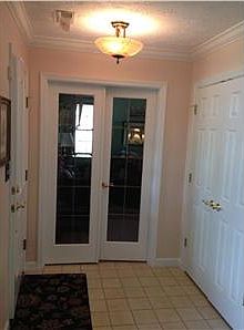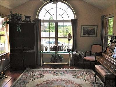Beautiful attention to detail. Crown molding, Chair rail and under & over cabinet lighting in eat-in-kitchen, Wood laminante floor in the living,dining & kitchen, Upgraded stone double sink and custom ceiling lighting in kitchen, custom glass french doors in entry way to private den, pedestal sink in powder room, drop stairs to attic storage in garage, heated roof cables over garage gutters, fireplace gas logs & screens, new toliet in master bath, new ww in den, 17x10 front porch w/canvas awning