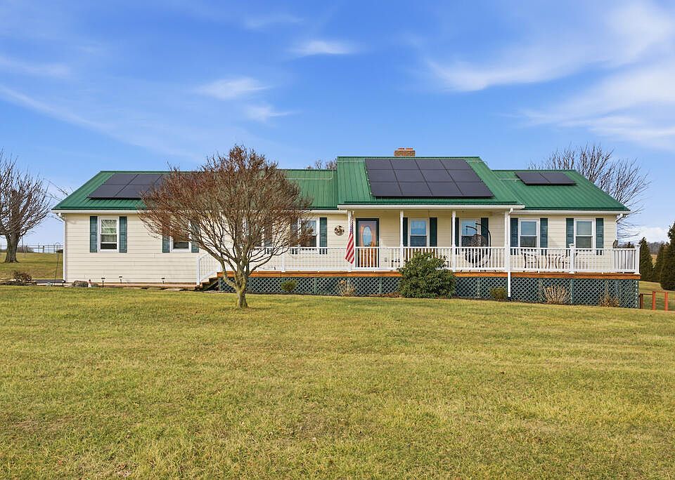 Welcome to this eco-friendly, low-maintenance 3-bed, 2-bath ranch. This well-maintained home offers easy one-level living with a private split-bedroom floor plan. The primary suite includes a walk-in closet, thoughtfully separated from the other bedrooms. Expansion is easy with a wired, full walkout basement ready to be finished. Built for efficiency and durability, the home features a metal roof, HardiePlank siding, and leased solar panels that keep electric bills between $35-$50/month. Hobbyists will love the 48x28 detached building with a 12ft lean-to, plus a 15x20 woodshed on a level, fenced lot. Relax on the front porch or in the sunroom. Located just 2 miles from Route 11, providing quick access to Volvo, Radford, Christiansburg, Blacksburg, and VA Tech.