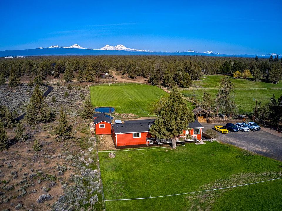 Beautiful mountain views from this 5 acre parcel strategically located on Deschutes market road halfway between Bend and Redmond. Acreage is set up for horses with a loafing shed and round pen. The property comes with two acres of COI irrigation that is delivered from two picture perfect elevated ponds. Irrigation piping is included which makes watering easy on this parcel. The manufactured home is in excellent condition having a new roof and new paint on the exterior. Woodstove is new to keep you warm and a split for cooling in the summer and additional heat in the winter. There are outbuildings for storage and livestock as well. Power sources are well located on the property. Call Mark to arrange a showing today.