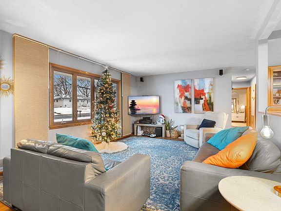Unspoiled Mid-Century Rambler with all today's must haves* Open & inviting * Be greeted by gathering place kitchen, living & dining* Note feature like Quartz counter tops, stainless steel kitchen appliances, original in built-in buffet and distinctive blinds * Bamboo flooring throughout main level * Open stairway to recently finished lower * Step down with lush new carpet through 30' family room, office & a den, all w/ fresh white walls* * Might you add an egress window or two for another bedroom(s)? * The lot is nearly 1/4 acre with gorgeous shade trees * Relaxing screened porch overlooks back yard, perfect for hot tub or cold plunge* Rare 80' wide lot adjoins alley * Explore the possibility of adding more garage or parking space * Freshly painted exterior * Marvelous double hung thermal windows * Front paver patio * Smooth, wide driveway * Low traffic tree lined street * Check out Hanson Park nearby * Award winning District 621 Moundsview Schools *
