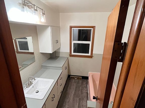Great neighborhood 3/4 bedroom house 2 bathrooms Detached double garage Front and back porch Includes refrigerator, stove, and dryer Tenant is responsible for utilities, snow removal and mowing Reference and background check required No smoking in the house Small pets allowed with a monthly fee 1 year lease