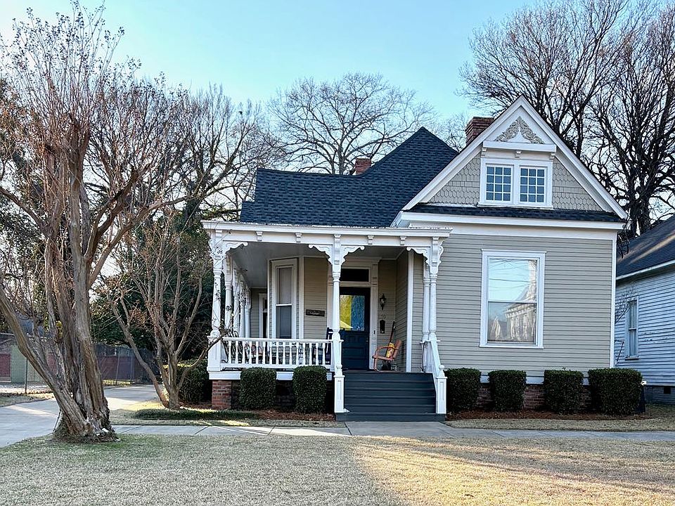 Huge opportunity in uptown. This is a true duplex in the historic district, (a dying breed)! The house has been a rental for many years & rents haven't kept up with the market so there is a ton of upside in this property. This home is all 1 level. The front spacious apartment has a 1 bed, 1 bath, laundry area also. The back unit has 2 bedrooms and 2 baths with laundry (stackable). It has it's own separate entrance & screened porch on the back off the kitchen. This property has retained it's historical integrity (gorgeous heart pine floors) over the years & offers a huge long term opportunity to make this a fabulous single family home combining the entire home into one that offers a huge primary suite on the main level. Parking is in back (3 spaces) & there is a backyard that can be fenced for tenants or family or both. There is a great storage building in back that has electricity and a concrete floor. It'd make a great office space or extra detached bedroom. An owner can have a large part of the mortgage paid by living in the front or back and renting the other part. And it offers all the amenities, activities, & quality of life that uptown has to offer....including the newest; spring baseball is just a few months away!