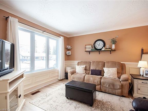 Welcome to this charming and turn-key 3 bedroom, 1 bathroom, 2 storey home with detached single car garage centrally located on a quiet dead end street with a large lot and private backyard. Main floor is bright with lots of character and features a living room, formal dining room and kitchen with direct access to the covered back porch with gas line for BBQ. The upper level features a spacious primary bedroom and 2 further bedrooms along with a 4pc bathroom. The lower level is unfinished and features laundry and plenty of storage space. The exterior has been very well maintained with patio stone walkway and covered front entrance and offers plenty of parking and an older garage with shed attached at back. The backyard becomes a summer oasis with a patio area and large mature trees. Close proximity to Kinsmen Trail, Chippewa Creek and downtown amenities. This property has been immaculately cared for and is in move-in condition for a new homeowner to enjoy.