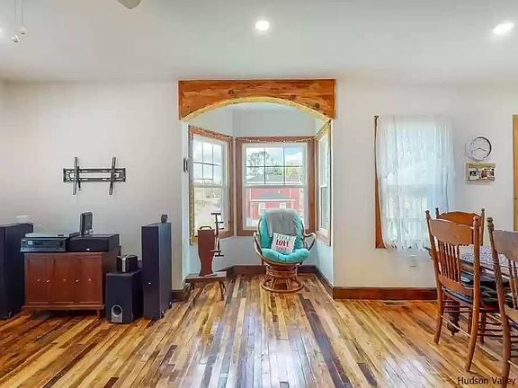 Kingston/Esopus Unfurnished Townhouse style 3-bedroom 1.5 bath with garage in the Hamlet of Sleightsburgh . This is a gorgeous unit located in the quiet and sought-after hamlet of Sleightsburgh. A complete renovation was done in 2019 featuring reclaimed hardwood floors in the living space along with beautiful wood beams. There is a front porch with plenty of room for a rocker or two, and a spacious back porch for barbecuing entertaining and sitting in the quiet. The garage is spacious and has room for one car and your stuff! New gas furnace and water heater. New Washer and Dryer inside the unit. The kitchen has all stainless-steel appliances. Located a couple of blocks from Sleightsburgh Park, enjoy walking trails, fishing, and kayaking and even a boat launch into the Rondout Creek leading to the Hudson River. Also, just a quick trip over the bridge is the Kingston Rondout for dining, shopping, museums, and the Sunday Farmer's Market featuring live music. This address has Kingston mail delivery and is technically located in Esopus. No Smoking. Renter pays all utilities except for trash. Open to pets on a case-by-case basis depending on breed and size.