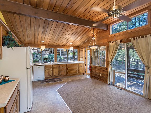 Beautiful home in the tall Ponderosa Pines of Prescott with adjacent build able city lot. Walk to downtown. This 1700 SQF home has a beautiful living space with treed views from every window. Energy efficient upgrades with dual flush toilets, rainwater catchment, raised garden beds, and greywater reuse system. There are 3 bedrooms and 2 baths and the 4th bedroom is an office/kids room. Large upper master loft with views of Granite mountain and Thumb Butte. The Great room looks out to the covered deck and Ponderosa Pines. The covered deck has a unique glass panel covering to enjoy the fresh air and great outdoors. Additional 24X 8 shed with a view can be used as a workshop or unfinished studio. Fully fenced artistically terraced yard with small lily pond and gardens.City water and sewer.