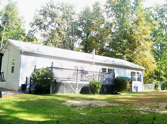 Top of the Mountain & End of the road PRIVACY & UNRESTRICTED in a beautiful wooded setting! This 2004 Modular (on frame) is in excellent condition & has a big flat backyard with a nice winter Mtn View that could be opened up for year round views woth some tree trimming. Home features wood burning stone fireplace, hardwood floors,walk in closets(dual walk ins in master BR)WALK IN PANTRY,garden tub, large rooms,covered front deck & large open back deck with stairs on each end,fenced area for pets,double carport, large backyard & storage bldg. with electricity.Has RV hook up in back yard. April 29,2014 tax assessment is $201,940 for modular & land. Priced to sell at $159,900.