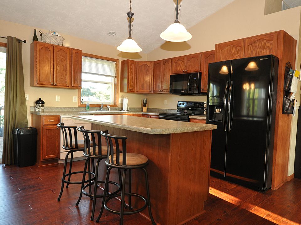What a great find! Open floor plan w/cathedral ceilings, large windows, sunny and bright throughout. All rooms are spacious, Kit w/chefs island, separate DA to deck which overlooks great yard. 2 big BRs, big closet in master, newly renovated full bath up and daylit filled LL w/2 addition big BRs, full bath, theatre and plenty of storage/workshop area. Updated landscaping. Friendly and Quiet neighborhood, convenient to it all. Priced really well!!!