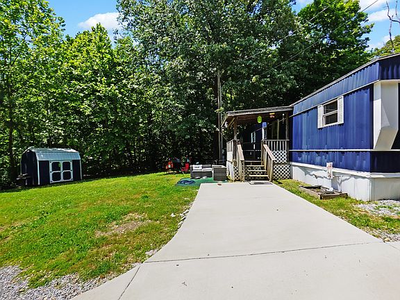 Tucked in among the shade trees on this 1.3 acre lot, you find this updated 3 bedroom-2 bath home. Multiple upgrades, paint, concrete drive and nice, matching storage building have given this mobile home a fresh outlook. Split bedroom plan and master having a private bath, as well. Kitchen offers a breakfast bar w/new countertops/appliances/sink and underneath plumbing, total rework to guest bathroom from floor-up, new lighting, some LVP and new carpet. You have a separate laundry room, covered front deck and small back stoop. Property offers lower, level area around the bordering wet weather creek if someone wanted to clear some treed area. Country setting yet convenient for Clarksville-Ft Campbell commuting. Fiber optic available! No restrictions. Property will sell, as is.