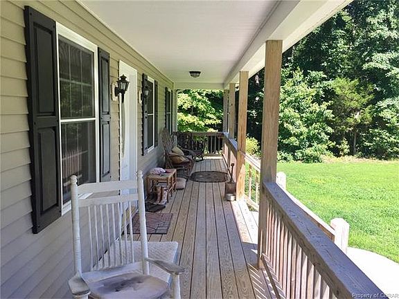 Privacy is key and this property has 7 acres accessed by a tree lined driveway. Home built in 2010 and only one person has lived in this home. Living room open to dining area with full table and buffet which is open to the kitchen. Master bedroom at one end of house, 2 guest bedrooms at opposite end with shared bath. Prefinished hardwood floors in all areas but kitchen, baths, utility room. Long country porch across the front of the home to enjoy the wildlife and coffee in the morning. Rear deck with sliding doors off of the dining area. Want to get to the RIVER quick, well Wake Boat Landing is just .4 mile from Blue Barn Road and you are out in the RIVER looking at the Chesapeake Bay. You will not get neighborhood and location for this price. Marsh on the very rear of the property. You can have horses here up to 4 per county.