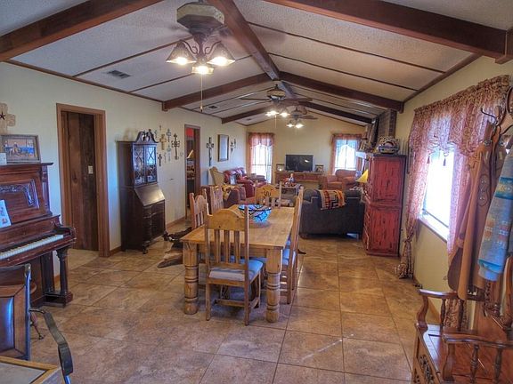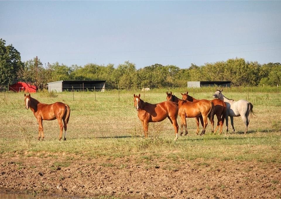 2,100 square foot brick home (4 bed 2 bath), insulated well house, above ground pool with deck, concrete in ground storm shelter, indoor riding pen with 4 stalls, tack room & wash bay, 6 horse runs with loafing sheds, galvanized grain bin with auger, outdoor riding arena, 2 horse paddock pens with loafing sheds, pipe cattle pens with squeeze chute & loading alley with loafing shed, excellent cross & perimeter fencing, multiple freeze-proof hydrants & livestock water troughs, 40 conex storage container.