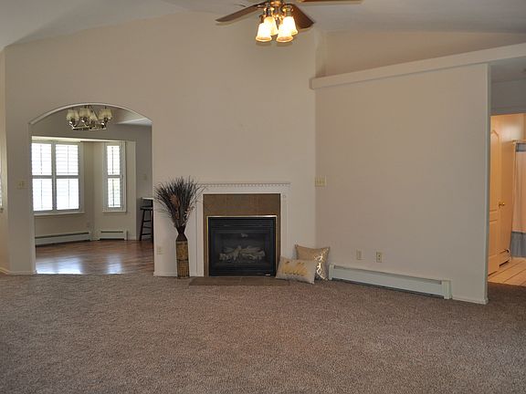 Bright and cheery home with new interior paint and carpet. Wood laminate flooring welcomes you as you enter the home. The dining room features a bay, window, wood shutters, and wood laminate flooring. The wood flooring continues into the kitchen. The spacious great room offers a fas fireplace to warm up a cool day and access to the covered patio. The split floor plan offers privacy to the master bedroom. The master bedroom has a bay window, walk in closet, and full master bath. Enjoy the private backyard with mature landscaping and covered patio. Home is ready for your personal touches! Buyer to verify all info/subject to change.