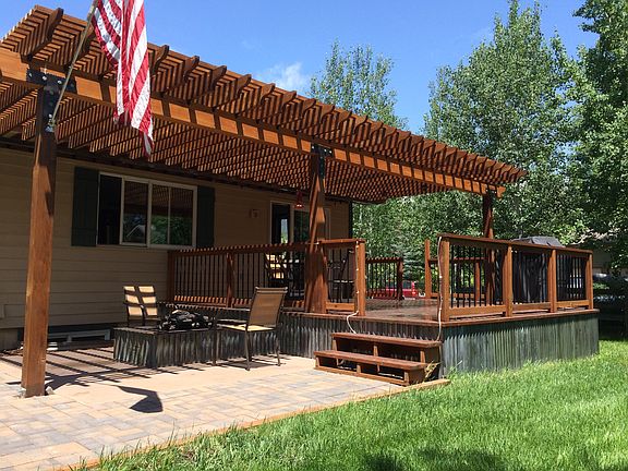 Corner Lot, Flowing Layout, Unique Design, Quality Finishes. This newly remodeled home with open floor plan is great for a large family and entertaining guests! Extensive custom woodwork and tile. Wide plank cherry hardwood floors on upper level. Travertine tile on upper and lower level. Solid wood doors throughout. Large 400 sq. ft. deck with wood awning and custom built gas firepit. Completely finished lower level. All new appliances. Must see to appreciate ~