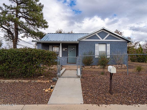Charming bungalow close to downtown Prescott and under $400.000.What more could you want? This 1940's charmer has been remodeled and updated and is move-in ready. The two bedroom, one bath split bedroom home features a metal roof, remodeled kitchen including stainless-steel microwave and dishwasher and updated stove and refrigerator. The full bath has been updated too and offers a beautiful granite countertop vanity and a subway tile surround shower/bath. The living room and bedrooms feature laminate (wood-look) flooring, The home sits on a corner homesite that boast of lush landscaping on a drip system and privacy fencing. Plenty of room to park 2 cars on side of home.Newer hot water heater and gutters with needle guard installed recently. Exterior trim and fascia has been painted recently.All appliances are included.