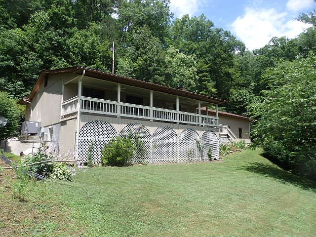 Very well kept 3 bedroom/2 bath home located just off Dicks Creek Rd, this home features an open design and a great long range view. It rests on just over 8 acres providing seclusion and also the possibility of some subdivision. Dicks Creek is just across the road so the sound of rushing water fills the air. The large master bedroom features hardwood floors and the two other bedrooms feature carpet. The double attached garage features an oversized roll-up door. There is also a basement area providing plenty of storage. And finally, the covered front deck provides a wonderful view of the Western North Carolina mountains. Just sit and enjoy!