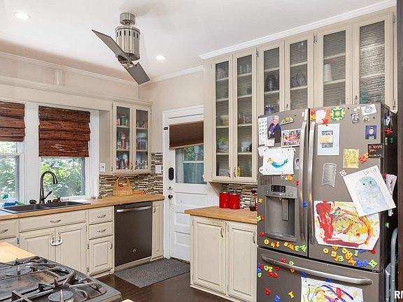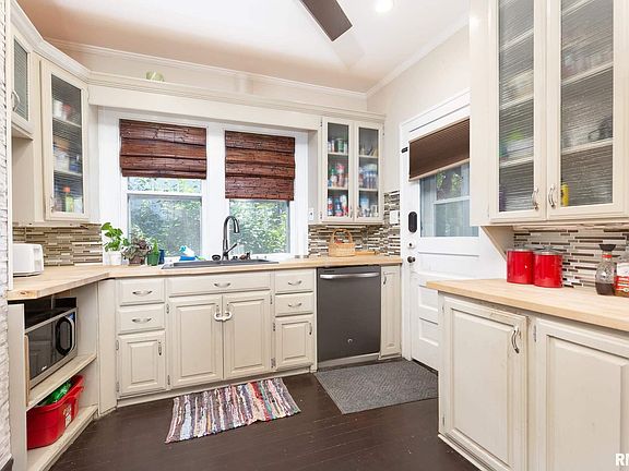 You don't want to miss this beautiful 4 bedroom, 2 bath home conveniently located in East Davenport near schools, shopping, restaurants and VanderVeer Park! Home still has plenty of the original features, like stained glass windows and gorgeous woodwork and crown molding, while being updated for modern amenities. The kitchen has been completely renovated with butcher block countertops, tile backsplash, and stainless steel appliances. Master bedroom is on the main level, and has a master bath, walk in closet, and sliding glass doors to the deck. Upper level has 3 large bedrooms, an updated tile full bathroom, and a cool reading nook. Per the seller, the roof, a complete tear off, was completed in 2016. Basement has plenty of room for storage, and shelving stays. A nice deck overlooks the backyard, which is fully fenced, and has a built in firepit. A one car detached garage, and extra parking slab round out this great property! Schedule your private showing today!