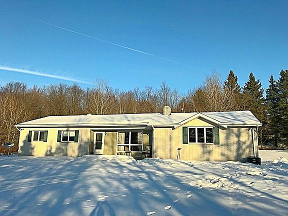 Ranch home on almost 5 acres!! Close enough to stores, restaurants, and recreation. Updates include custom, hickory kitchen cabinets with pull-outs and stainless steel Whirlpool appliances. Newer tiles in kitchen and Bath, Pergo in LR and Office. Heat with oil, electric, or wood on its own chimney. Working fireplace in the living room. Central air! The ranch house is set with 2 bedrooms and office but could be back to 3 bedrooms. 2 full baths mostly updated. Laundry room off the kitchen has its own exterior entrance and entrance to oversized, 2-car garage...room for yet another workshop. House sold as is - bedrooms are in need of aesthetic touch-ups, carpeting, and painting. Both BR's have closets. Master BR has a full bath. A full block basement is clean and dry. House has double pane windows and screens. large back patio off the kitchen, vinyl and brick exterior, 2-car garage, asphalt driveway. Private setting near Rail-Trails and skiing at ELK Mountain. Can see the mountain from your yard! Keep your car collection or big toys in a separate 40x50 garage with heat and 16' ceilings. Oversized door, office space, plenty of storage. Parking area in front of this garage is separate from house drive – excellent for your own business needs!