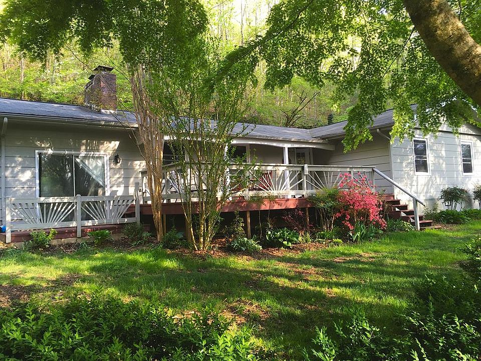 Tuckasegee River View from 23+/- acre tract in Cullowhee, Minutes to WCU. NC. SINGLE LEVEL LIVING. So many improvements since seller purchased in 2017! New well, septic pumped recently. French drains, attic fans and new insulation, sump pump in crawl space, new water heater, landscaping, 1 acre dog fence/gate, blueberry orchard and pond, house exterior painted, new south facing deck added, all rooms painted, new energy efficient double hung larger windows installed, all wood floors refinished, bathrooms remodeled/updated, and kitchen remodeled. House is a pleasant one level ranch house with 3BR/2BA plus bonus room ideal either for 4th sleeping space, den, artist studio or workshop. Large kitchen with many cabinets and plentiful counterspace. Heated with portable Delonghi heaters with success per Seller. Great river view from house,more possible with trimming. Workshop/storage building useful for garden tools, outdoor equipment etc. Private nature wonderland of 23+/- acres. Quiet! 10-15 minutes to shopping, restaurants, medical and other schools. Very easy access paved to end of driveway. Heavy duty security gate. Strip of acreage on river! 24 hours notice requested to show.