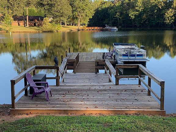 This is a newly remodeled 3br 2 bath lake front home in a very nice sized and deep water cove with 100feet of water front, 16x20 dock with plenty of room for a couple of boats. Has all new concrete partially covered patio with outdoor fan to stay cool during those hot summer days. Newly built 18x26 enclosed detached garage on a solid concrete foundation that?s wired with outlets and led lighting. Inside house has hard wood floors throughout and ceramic tile in both bathrooms along with full ceramic tile showers. Kitchen has granite counter tops with new cabinets along with stainless appliances . Recessed led lights throughout the house and ceiling fans in all rooms along with a fireplace in living room , central air and natural gas heat. There is also a community boat ramp with a yearly charge so you can have your own key.