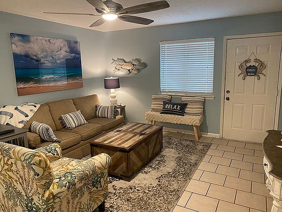 Just steps from the beach, this affordable 2 bedroom 1.5 bathroom unit provides a generous amount of comfortable living space. This unit has many updates inside and out including flooring throughout, paint and lighting. This updated kitchen opens up to the dining area and features new cabinets, lighting, appliances, wood floors and a large breakfast bar. Make your way through the spacious living area and up the stairs to the grand master bedroom which has tasteful new paint, a large closet, and a private balcony. Your guest will be comfortable in the large additional bedroom. Enjoy fun in the sun at the beach or relaxing by the pool. Bahama Beach is conveniently located close to great shops, popular dining and entertainment.