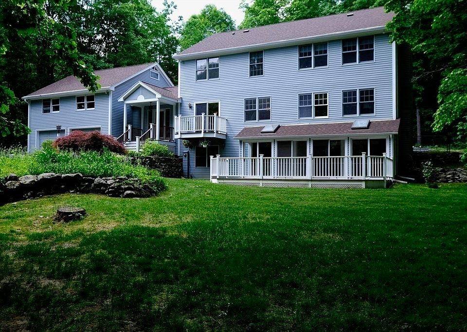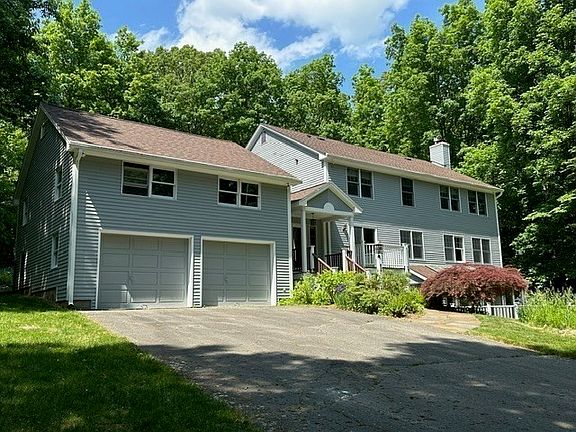 Enjoy both privacy and proximity to town in this hilltop home, beautifully situated in one of Northampton's most desirable locations. In front, a sunny yard offers lovely seasonal views from the deck; in back a patio with easy-to-care-for in-ground pool yields to acres of woods. On the first floor, a roomy, light-filled kitchen with granite countertops & maple cabinetry opens out, along hardwood floors, to an ample dining area & a spacious living room with fireplace. A study & a half-bath/laundry room complete the first floor. Four ample bedrooms & two full baths occupy the second floor, including a light-filled primary bedroom suite which features a luxurious, tiled bathroom with separate tub and shower. Walkout, open-plan lower level, with full bath, striking pine plank flooring and sliding glass doors to the front deck, furnishes still more living space. A two-car garage with a spacious unfinished 2nd floor is perfect for a studio or workshop. New septic system will be installed.