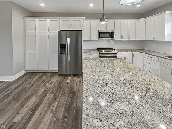 Come and check out this beautiful ranch home located in a sought after friendly and quiet community. This home offers 9' ceilings throughout and beautiful windows that allow sunlight in this modern home. This home has a modern kitchen with a large island, stainless steel appliances, granite countertops, upgraded self close cabinets, and sleek backsplash. The primary suite has a walk in closet, and a nice primary bath with double sinks and a beautiful tiled walk in shower! This home was vinyl plank flooring, upgraded doors throughout, and an epoxy floor in the finished garage. The back deck is 30X18 and has a ceiling fan and lights and looks out to the lake! Coming and make this beautiful home yours today!