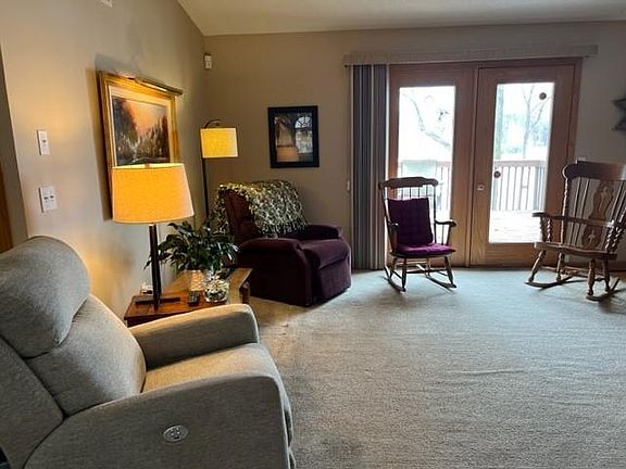 Welcome to this 55+ community located on Keller Lake where you will enjoy wonderful sunsets from your patio and deck! This home is in great condition and boasts tons of storage space. A gas fireplace adorns the living room, spacious kitchen with newer refrigerator and adjoining dining room over-looks the lake. There is a full bath and master bedroom, den or second bedroom and laundry also on this main level. A stair-chair lift is attached for ease in entering the lower level, where you will find a guest suite with large family room, wet bar, storage room, full bath with walk-in tub/shower, third bedroom and walk-out to patio. In the finished garage you will find storage cabinets and a finished epoxy floor. This home has a huge yard and is move-in ready with a quick close is possible.