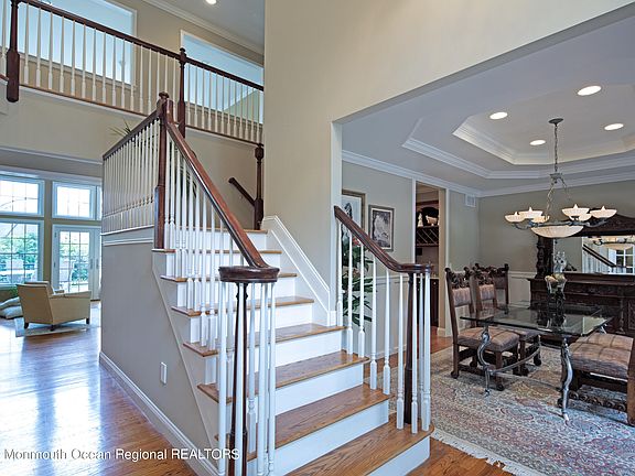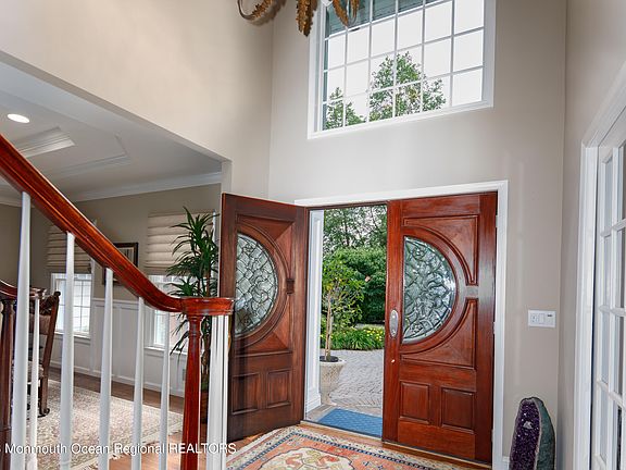 WELCOME TO BRIELLE! This meticulous, beautifully crafted Custom Colonial is STUNNING! Located on a private tree-lined rd around the corner from the Manasquan River Exclusive Golf Club, it is considered one of the nicest neighborhoods.Gorgeous 5 bedrms & 4.5 luxurious bths, includes a 1st flr bedrm/bth & a Studio rm with access to side yd.Grand entrance foyer leads to the living & dining rm. Custom designed EIK features Cherry wood cabinetry, limestone flooring, granite counters, stainless steel Viking appliances & Sub Zero refrigerator.Built in Butler's pantry is equipped with beverage refrigerator. Master carpentry, meticulous crafted details, & 9ft ceilings are thruout all principle rms.