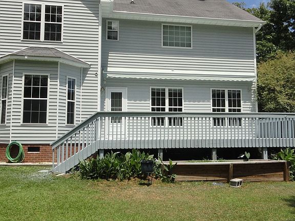 This gorgeous two story 5 bedroom home is located in the Rock Creek golf course community and sits just off of the 10th hole! This home comes with mature trees and beautiful landscaping. Downstairs features a newly updated kitchen, family room, dining room, bathroom, and formal living room, which can be used for a variety of needs and just off of the main family room. Large windows with cellular shades are abundant in every room to allow for beautiful outside views. The downstairs has beautiful laminate wood flooring and a fireplace in the living room. Upstairs you will find 5 bedrooms with 2 full baths. The master bedroom has a large walk in closet and an adjacent door to another second bedroom. Perfect for an office or nursery. The master bathroom opens with french doors and has a large whirlpool tub and two separate sinks and vanities. The second bathroom also has two sinks and a shower/bathtub combo. Additional conveniences include upstairs washer and dryers, split heating and cooling (thermostat for each level), large storage shed in the backyard, designated garden bed, aesthetically appealing aluminum fence closes in the back yard with two large gates at the driveway for access to parking a boat or camper in the backyard. There is also the option for you to use the private Rock Creek pool and fishing ponds if you pay to become a member.