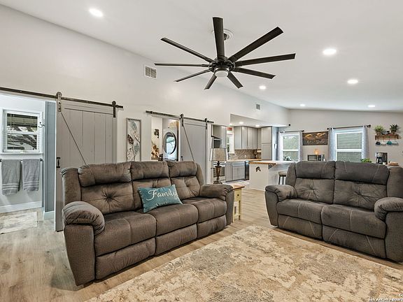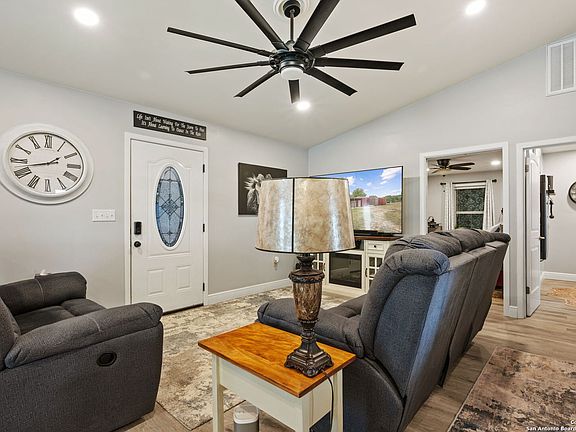 Come see 639 River Bend nestled on the Medina River! This two-bedroom home has been recently remodeled with exquisite fixture and material choices. The kitchen has new butcher block countertops, beautiful mosaic tile back splash, and new cabinets and hand pullouts for great storage and accessibility. The floors and ceilings are all new and the inset ceiling lighting makes the space warm and comfortable. The property is made up of three lots, which provides ample room for outdoor activities. A unique outdoor gathering space gives you great options for entertaining or just relaxing. There are two RV hook ups with septic, water and electricity plus a new large, covered space for a large RV. Do you need a spacious shop or hobby space with a garage door? Check! This property has a large, attached shop that is both efficiently laid out and in immaculate condition! For River Bend Estates residents there is a river park for your enjoyment. Finally, 639 River Bend is minutes away from the Cowboy Capital of the World which has great shopping restaurants and great people! 639 Riverbend can make a wonderful getaway home or your new permanent residence.