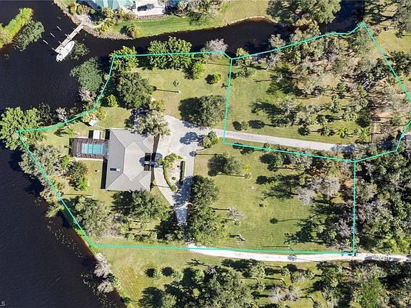 RARE: 50% WATERFRONT on 2 sides = Endless POTENTIAL! 2 Lots + 1 existing large rancher —- only 1 Price. Escape to the charm of RURAL OLDE FLORIDA with this RARE, OVERSIZED INVESTMENT opportunity on a TOTAL of 2.92 stunning RIVERFRONT & CANAL FRONT ACRES. Nestled on the Caloosahatchee River, this property boasts navigable water on TWO sides, offering unparalleled country river views and serene, peaceful living. *** Featuring TWO lots: 639 Rope Bend AND 680 Turtle Lane (MLS# 225001638). This combined property includes a BOAT RAMP, dock, AND the ADJOINING (.81 ACRES) TURTLE LANE LOT, offering nearly 3 ACRES OF WATERFRONT PROPERTY!! Perfect for water enthusiasts, and is shaded by majestic live oak trees draped with breezy moss - creating a picturesque & peaceful setting for your dream estate. The existing home on the Rope Bend lot is just over 3,000 square feet and is a blank canvas awaiting your personal touch and creativity to reimagine. Close your eyes and be transported to cool Florida evenings by the fireplace; with 3 sets of French doors open to your expansive pool deck with an abundant shaded area and large pool overlooking the breathtaking water on 2 sides. This tranquil retreat rewinds time to Olde Florida charm and solitude. It’s more than a property - it’s a feeling that is worlds away from the hustle and bustle of day to day life, yet it’s conveniently located to several modern conveniences, including: just one minute from O’Reilly Auto Parts, three minutes from Walmart and Tractor Supply, and four minutes from Culver’s and Labelle Brewery. Only an easy 40 minutes from SWFL airport for snowbirds! Carve out a beach day on Sanibel Island or Fort Myers Beach - just an hour drive away. Whether you’re dreaming of a peaceful country escape, a place for horses, private parking for your RV and boats, or an INVESTMENT to SUBDIVIDE with endless potential to build out the Turtle Lane lot as a guest house or to sell off separately - - - this property delivers it all! You will not find nearly 3 WATERFRONT acres with so much potential anywhere else in LaBelle on the active market. Don’t miss this extraordinary opportunity to create your perfect riverfront lifestyle!