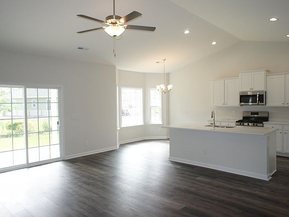 Beautiful Seascape floor plan in the Ocean Palms community. This terrific open floor plan home has upgraded wood-look LVP flooring throughout the entire home - no carpet! Stainless appliances, staggered-height Shaker-style white cabinetry, quartz counters, a corner pantry and a convenient work island/breakfast bar combine to give the kitchen the wow factor you're looking for, and the bay window in the dining area floods the room with light. Sliders at the back wall of the family room lead to a covered porch and a concrete patio. The spacious owner's retreat features a tray ceiling, oversized walk-in shower, long quartz vanity with double sinks, plenty of storage in the cabinetry and linen closet, plus a huge walk-in closet. Two additional bedrooms and a bath with quartz counters are tucked off on their own private hallway, for privacy. All of the homes in Ocean Palms come standard with the luxury of natural gas (tankless water heater, gas heat, and gas range). The garage is completely trimmed and painted, with floored attic space accessed by drop-down stairs, and an added mop sink. Ocean Palms is conveniently located near shopping, restaurants, schools and world class medical offices and hospitals, and is only a short golf cart ride to Surfside Beach's gorgeous beach and the Atlantic Ocean. Other floor plans and inventory homes may be available. Community pool and cabana!