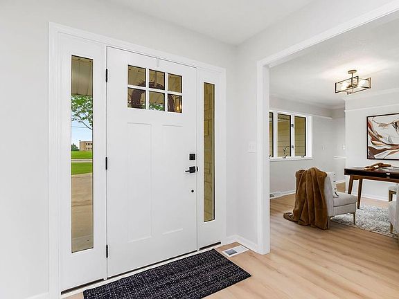 This beautifully updated expansive ranch combines spacious living with modern convenience, perfectly situated just 5 minutes from the lake. Set on a generous lot with a stately circle driveway, the 4-bedroom, 3-bath home features an inviting kitchen with granite countertops, a large island, and stainless steel appliances—ideal for cooking and entertaining. Enjoy the warmth of two fireplaces, one on each level, and a versatile room that can serve as either a formal dining area or an office to fit your lifestyle. Large room sizes throughout provide plenty of space for comfortable living. Bathrooms have been thoughtfully updated with sleek quartz finishes, and a main-level laundry adds practical convenience. Outside, a large deck offers an excellent space for outdoor dining and relaxation. The finished walkout basement, perfect for multi-generational living, includes an additional bedroom, a non-conforming room, a full bathroom, an elegant bar area, and a third garage bay—ideal for a workshop, storage, or hobby space. For added peace of mind, the home also includes a secure safe room—perfect for storm protection or added security. Additional highlights include a new roof, an elevator (currently requiring maintenance), and ADA-accessible features to enhance comfort and accessibility. Located just minutes from dining, shopping, and easy highway access, this home offers flexible, comfortable living in a sought-after location!