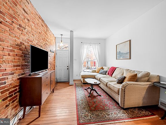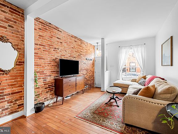 Nestled on the charming, tree-lined South Decker Avenue, this Canton gem offers a unique blend of neighborhood charm and urban convenience. The open-concept, sun filled, main level features exposed brick, hardwood floors, a spacious living and dining area, and a kitchen with ample storage and counter space, perfect for entertaining. Upstairs, the primary bedroom offers high ceilings and generous storage with a closet. A second bedroom and full bath round out the upper level. A full-sized, dry unfinished basement with a walk-out provides endless possibilities for storage or a future opportunity to finish it for more living space. Recent updates include a new refrigerator, washer/dryer, sump pump (2024), and HVAC system (2021). A private parking pad in the oversized alley accommodates a full-sized SUV and doubles as a lounge and entertainment space. Ideally located just two blocks from Patterson Park and a five-minute walk to Canton Square, this home is central to dining, shopping, and major highways, offering the best of Canton living!