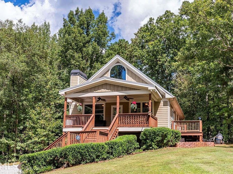 Located on 5.4 wooded acres very convenient to Lake Sinclair. Living room features a tall vaulted ceiling with wood burning stone fireplace. Kitchen is complete with stainless steel appliances and breakfast bar that opens into the eating area. Master bedroom located on the main level with attached laundry room and walk in closet. Master bath features a large double vanity and tile shower. Second sleeping area and bathroom on the upper level with a balcony over looking the living room. Unfinished basement offers room for storage or expansion if desired. Lot has road frontage on two sides. Shared access community boat ramp to Lake Sinclair.