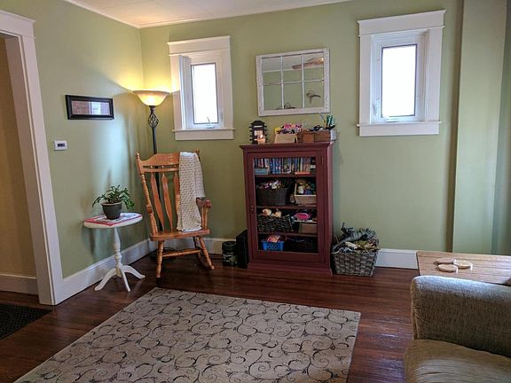 Classic home with kitchen and bath updates.Replacement windows,added powder room on first floor,refinished hardwood floors in LR, DR and Kitchen.Inviting front porch, rear deck, fenced yard and off street parking.Wood stove and central a/c. New balcony on second floor, exposed brick chimney in bedroom 2 and wainscoting in kitchen and baths. All knob and tube wiring is being replaced and will be completed before settlement.Gas in house for cooking