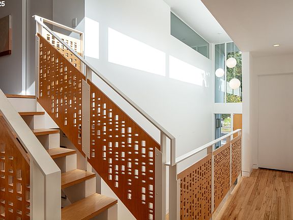 The Leedy House. Paul McKean’s AIA-recognized design is offered for the first time on the market. Known for his destination homes across Oregon, McKean’s work is noted in part for his intensive light studies, and Leedy is no exception. The reimagined 1964 split-level layout unfolds across four alternating floors, allowing for privacy and fluidity. Programmatic zones reveal themselves gradually, and the central stair becomes both an organizing element and a subtle clock, marking the shifting light as it moves across the day. The core of the project is essentially a functional vessel for light, while the central stair acts as a screen, producing dappled shadows and playful shifts in light throughout the day. The design carefully regulates illumination to create a balanced, indirect glow. As sunlight filters through the clerestory, it hits the walls, which are softly washed and reflect light deeper into the space. The result is a thoughtful blend of calculated light studies and material warmth. Set in the garden community of Garthwick—just four blocks between the historic Waverley Country Club and the Willamette River—the home is nestled within a lush, thoughtfully planned neighborhood. Like the bucolic communities inspired by Frederick Law Olmsted, Garthwick feels like an extended outdoor space. It offers all the charm and walkability of Sellwood, but with a quieter, slower rhythm just over the county line in Clackamas. Only a handful of homes come to market here each year. A detached gym building sits just beyond, with beautiful high ceilings and a retractable door. It reflects a broader shift: the integration of wellness and work into the domestic realm—no longer separate, but essential to how we live now. The lower floor functions like an attached ADU. Beyond its architectural merit, Leedy has had a cultural life as well. It has appeared in multiple episodes of Portlandia and American Vandal, a fitting backdrop for stories that capture a certain Portland spirit. [Home Energy Score = 3. HES Report at https://rpt.greenbuildingregistry.com/hes/OR10239133]