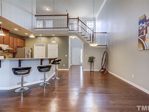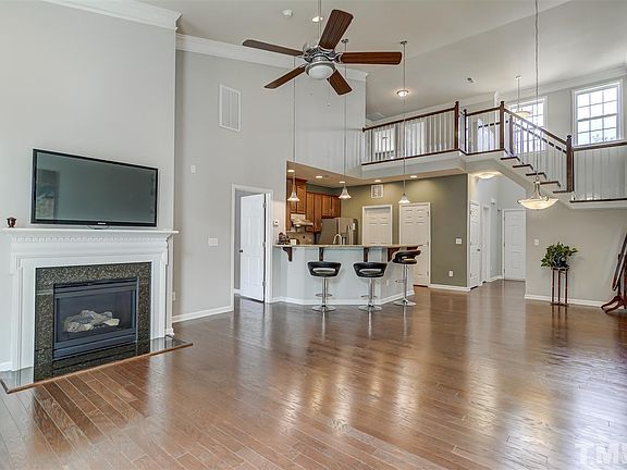 Immaculate & move in ready townhome loaded with updates in prime Cary location. Open floor plan. Upgraded hardwoods throughout 1st floor. Spacious family room features soaring cathedral ceiling, gas log fireplace & lots of windows. Separate dining area. Kitchen offers granite tops, tile backsplash & s/s appliances (gas range + high end exhaust fan). All appliances convey. 1st floor master w/ trey ceiling, oversized shower & walk in closet. 2 bedrooms up w/ loft area + flex rm. Screen porch. Pool community
