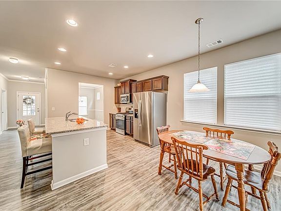 - Kitchen Features: Breakfast Bar, Cabinets Stain, Pantry, View to Family Room, Stone Counters, Kitchen Island, Breakfast Room