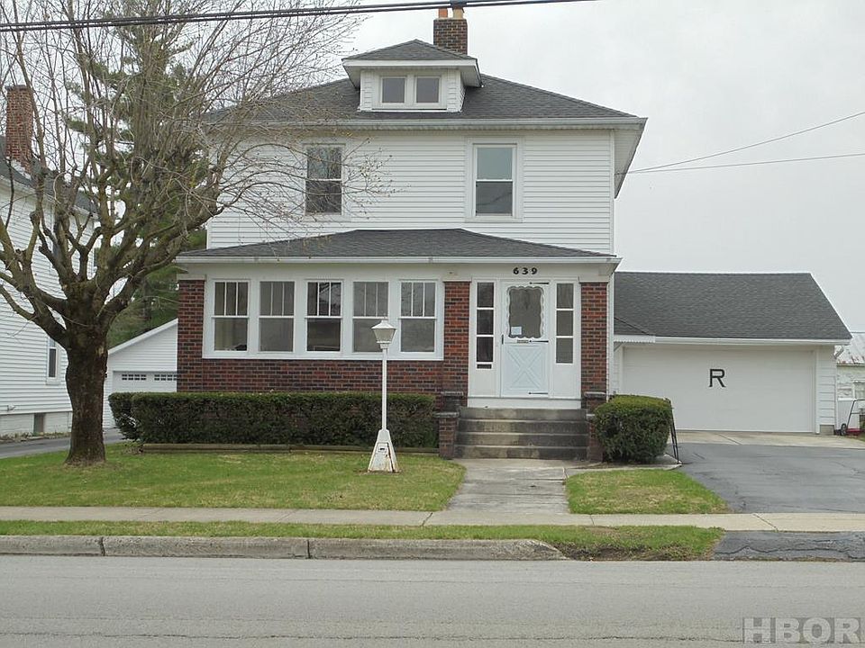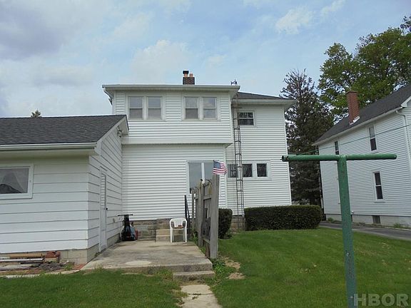 Two story home having a newer roof, vinyl siding, a lovely enclosed front porch, and sits on a nice sized lot on the West side of Carey. The home features an eat in kitchen, original woodwork, an open staircase, some decorative glass windows, and hardwood floors in both the living room and dining room. All 3 upstairs bedrooms also have hardwood floors and replacement windows. There is extra storage in the walk-up floored attic as well as in the full unfinished basement.The 2 car attached garage is heated. A concrete patio overlooks the deep backyard. This home is not in a flood zone.