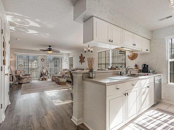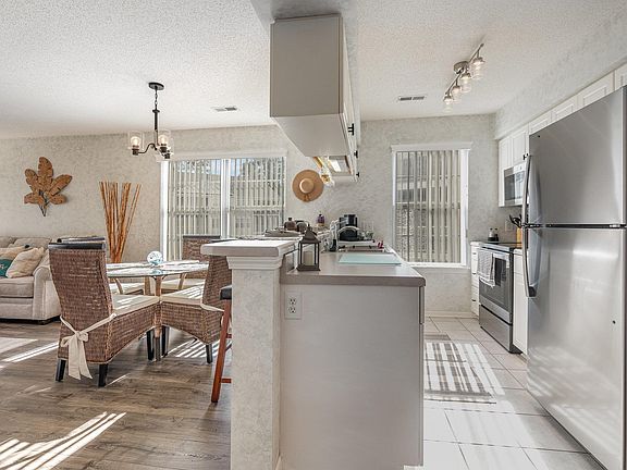 Discover your dream beach condo, meticulously maintained and upgraded for ultimate comfort. This condo comes fully furnished and ready to accommodate you as a second home near the beach or a primary residence. The kitchen boasts all new appliances installed in 2023, and a new HVAC system within the last two years! Enjoy serene pond views from the screened-in porch, stylish flooring, and vertical blinds. Located less than two miles from the beach, it's a quick drive or golf cart ride to sandy shores. PLEASE NOTE the hall tree in the foyer and a few personal items will not convey.