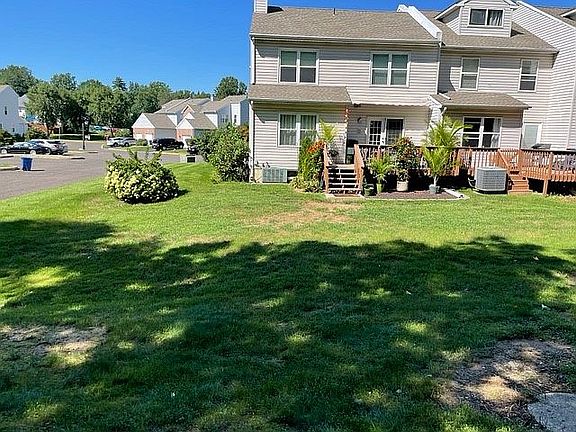 Welcome to your beautiful, fully updated Bensalem Townhome. End unit, corner lot, in ideal neighborhood (Bensalem Village) with highly rated Bensalem schools. This spacious home at 639 Yale Court, Bensalem PA, features a desirable semi-open floor plan, with a newly updated Quartz Gourmet Kitchen and Stainless Appliances (Stove & Microwave new in late 2021, under warranty). Freshly painted throughout, neutral grays, tans, and blues, with laminate flooring and tile on first floor. Open living room/family room with wood-burning fireplace for cozy nights of warmth. This spacious home includes 3 bedrooms upstairs. The large master bedroom has a fully renovated bathroom with double-sized glass surround shower, plus waterfall & second shower head. Generous sized second and third bedrooms, all with lighted ceiling fans. Second upstairs bathroom also renovated. New glass-top GE washer (in 2021) and matching GE dryer, both with extra load capacity, and a desirable second-floor location. Two full bathrooms upstairs, one half bath main floor and one half bath in finished basement (4 total bathrooms). Property backs up to wooded area, with lots of privacy. French doors open to the lovely back deck facing a view of nature. High-end finished basement, with new carpet and a large projector screen system and amazing surround sound, plus a bar set-up and matching stools, all included! Low HOA fee includes Xfinity package plus HBO, access to community pool, tennis courts. Newer roof and all outside areas are covered by Association.