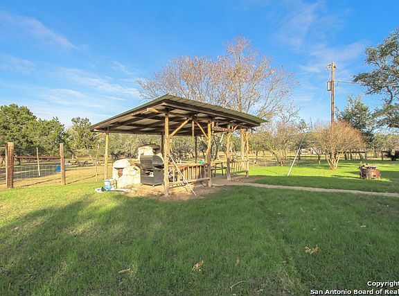 Beautiful unique custom built ranch home on 31 acres! Currently being used as a deer lease with high fences designed for bow hunting. There is also a two story horse barn with three stalls and a loft, a storage shed, a workshop building, and several other structures on the property. Front 10 acres is zoned commercial (frontage on 1283) with a 3 septic and 2 wells. Beautiful pond on the property with open pastures for the horses. All animals negotiable to convey along with mineral rights (oil onsite)