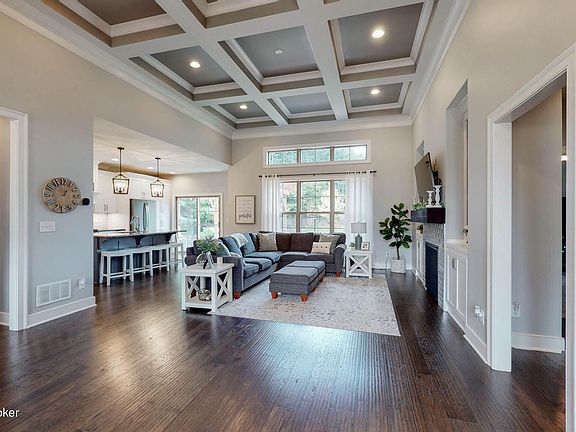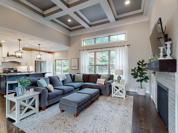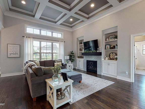 Welcome home to this beautiful, like new, split bedroom designed ranch plan. This home offers hardwood floors throughout the majority of the first floor and an open concept living flow. The kitchen is open to the great room and has an abundance of white and gray custom cabinetry, plenty of granite counter space, a center island with seating for five, tile backsplash, and appliances that include a gas stove with double oven, dishwasher, refrigerator, and built in microwave in a slate finish. The great room has coffered ceilings, a gas fireplace flanked by book shelves, and a wall of windows. The dining room is light and bright and perfect for entertaining. The primary suite is spacious and has a hip vaulted frayed ceiling, a beautifully appointed en suite bathroom complete with double sink vanity, soaking tub, separate tiled shower, private water closet, and a large walk in closet. The 2 bedrooms on the other side of the house share a nicely appointed hall bath. All bathrooms have solid surface countertops. This house also has a cute powder room for your guests to use. The laundry room is a good size and includes a cubby area, and a folding area. The finished basement includes a large family room, another bedroom, a bonus room currently being used as a bedroom and a full bath. There is also plenty of unfinished space for future finishing potential. Outside, there is a perfect stained concrete patio covered by a pergola, large enough for extra seating and a fire pit area. Located in highly desirable Brentwood Subdivision, the neighborhood includes a clubhouse, pool, and tennis courts, and is conveniently located to shopping and expressways. Don't miss out on this beauty.