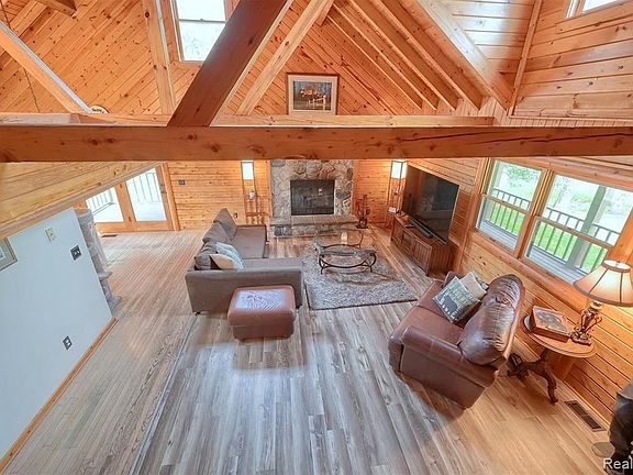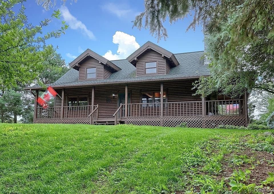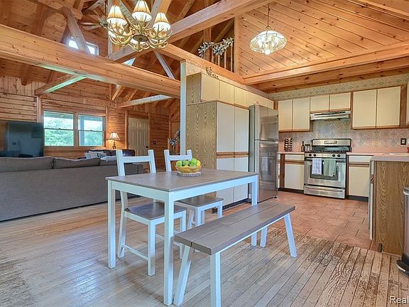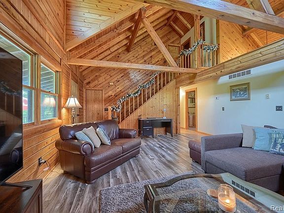 Welcome to your dream home! This custom built log home on a scenic rolling 10 acres features a charming wrap-around porch, beautiful stone fireplace & a walkout basement. Improvements include fresh paint throughout, a brand new furnace with warranty, central air, & new flooring. A hay barn on the property features cement floors, electricity, a newer roof & multiple stalls. The chicken coup can fit 10-15 birds. Outside includes a fenced area as well as 3 pasture areas. Basement has a 4th non-conforming bedroom and safe room.