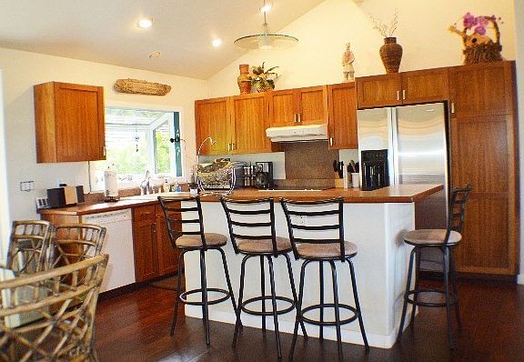 Located less than 1.5 miles from "Gilligan's" (Moloaa) Beach, enjoy 2 acres of land with wonderful views of Moloaa Valley, distant ocean views, and your own forest from your 3 bed / 2 bath main home plus 1 / 1 guest space.An open floor plan with beautiful hardwood floors and a vaulted ceiling greet you as you enter the bright airy home. Enjoy:* Privacy* Beautiful Views* Open Floor Plan* Large Comfortable Living Room with Views & Access to the Back Lanai* Cherry Cabinets and an Island in the Kitchen* Vaulted Ceilings* Distressed-Style Engineered Hardwood Floors in Main Living Area* Beautiful "Vessel" Sinks and Tile in Main Baths * Generous-Sized Bedrooms* Master Bedroom with Valley Views & Access to the Back Lanai* Extra Family/Guest Space w/the same Distressed Wood Floors in the Permitted Converted Garage* Plenty of Storage* Landscaped Upper Yard with Multiple Small Lily Pond Features* Fruit Trees: Noni, Mango, Lemon, Orange, Bananas, Guava, Cacao, +* Split A/C in the Main Living Area* Riding Your Bike to the BeachWith no home on either side or behind, this will be your private reserve. Carve walking paths through your 2 acres ... create pockets of quiet reflection ... grow some fruit. All on your own property.Furnishings available to purchase via a separate bill of sale.This is the home you deserve!