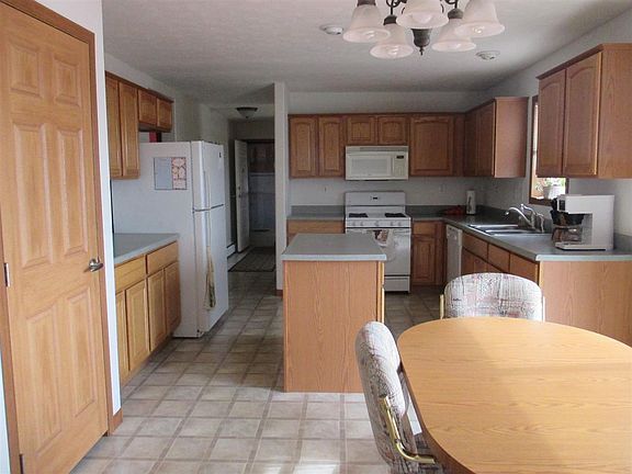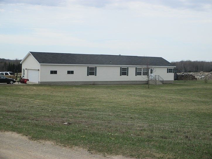 Large spacious ranch home on 8 acres with 2 car 27x24 attached garage. The garage has insulated walls and ceiling, heated floors and entrance to basement. Home has a propane boiler but owner uses the wood boiler currently and propane as supplement. The boiler also heats all the domestic hot water for the home very efficiently. There are 2 bedrooms and a full bath at one end of the home and a master at the other. The master has a view of the back yard, walk in closet and master bath with jet tub. The living room features a wood burning stone fireplace. The home has many upgrades including all drywall, 8ft ceilings and upgraded cabinets with roll out drawers. The kitchen opens up into the dining area that has patio doors out to the deck. There is also a built in desk area in the dining room. There are frost free electric and water lines that run out 200ft con't....