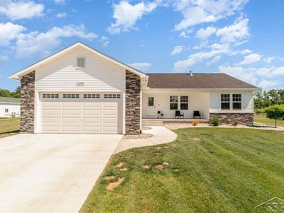 QUALITY CUSTOM BUILD IN 2019 ~ RANCH HOME ON OVER 2 ACRES WITH A POLE BARN This nearly new home has 3 bedrooms, 2 bathroom, open concept, white kitchen with granite counter tops and stainless slate appliances. Primary suite with walk in closet, double sink vanity, built in linen and tile surround shower. Split floor plan offering 2 bedrooms and main bathroom. High efficiency 2 stage furnace and heated garage. Outside you have 38 x 40 pole barn with electricity, 16 x 16 paver patio, firepit area, full irrigation system and landscaped. Home is NOT in flood zone. Don't miss out on this rare find and schedule your private showing today