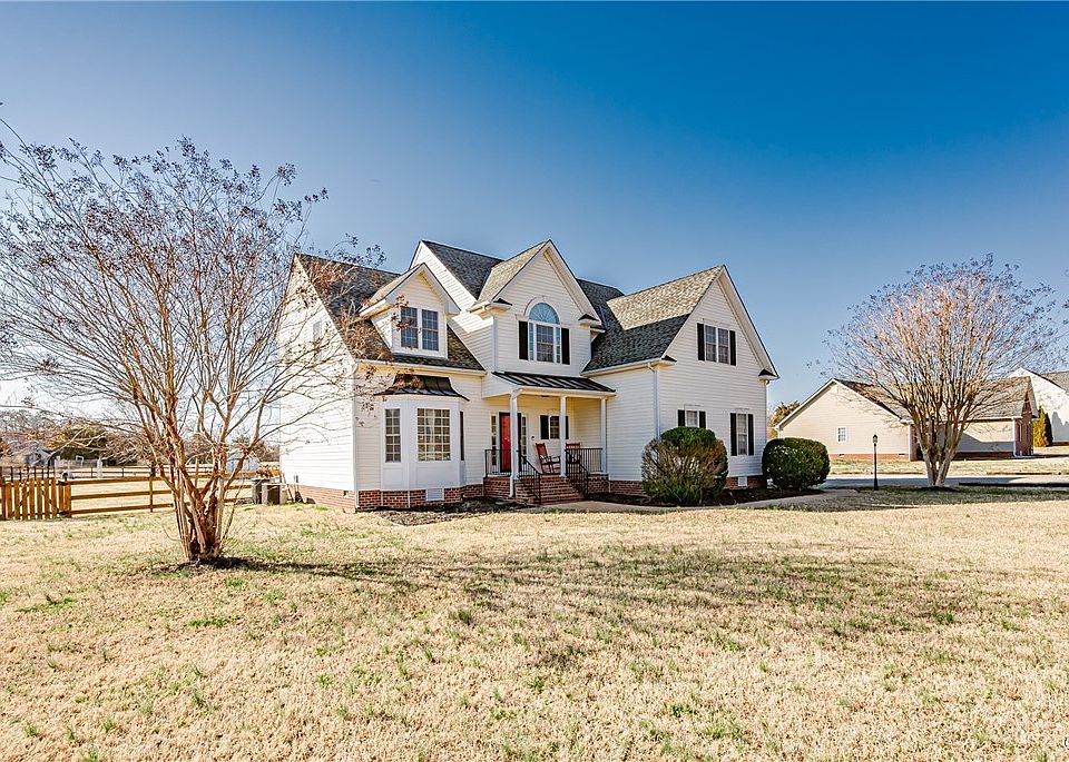 Seize the opportunity to own this stunning 2-story vinyl-sided transitional home set on over an acre of beautifully landscaped property in Sandston, Virginia! This meticulously maintained home features 4 spacious bedrooms and 2.5 bathrooms. Step into a welcoming foyer that leads to an eat-in kitchen and an elegant formal room with hardwood floors and crown molding. The family room, complete with a gas fireplace, creates a perfect space for gatherings. Upstairs, find four generously sized bedrooms, three with walk-in closets, and two full baths. The primary bedroom is a luxurious retreat with vaulted ceilings and an en-suite bath boasting a double vanity. The walk-up attic offers endless possibilities, while the fenced backyard with solar lighting is perfect for outdoor relaxation. Plus, easy access to I-295 and I-64 makes commuting a breeze.
