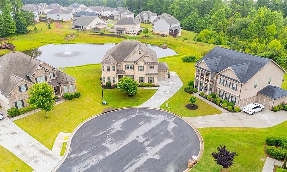 This home sits on a peaceful pond where every day feels like a retreat. You can teach your kids to fish right from your own backyard, enjoy the beauty of waterfowl and in the evenings enjoy the water feature that lights up directly in the back of your home. Welcome to the Rosemont by Century Homes-where luxury meets lifestyle! Nestled in a quiet cul-de-sac and backing to a peaceful pond, this stunning NORTH facing home combines style, space, and serenity in one of the area's most sought after communities. Boasting 6 spacious bedrooms and 4 full baths, this floor plan includes a main level guest suite with a full bathroom. The main floor has an additional flex area that can be used as a playroom, library or an additional living room. An entertainer's dream, the dining room is perfect for hosting holidays, dinner parties and unforgettable family gatherings. The heart of the home is an open concept kitchen that blends beauty with functionality. You will love the show stopping 12-foot island, granite countertops, stainless steel appliances, and walk in pantry. Make sure to open the cabinets to see the beautiful built in spice rack and the custom pull outs in every cabinet. You will not believe the number of cabinets and storage that you have in this chef's kitchen. Enjoy the convenience of a brand-new dishwasher and new disposal. This space flows seamlessly into the warm and inviting family room with gas fireplace. Enjoy serene POND views from nearly every room along the back of the home, bringing the beauty of nature indoors. Throughout the home you will find elegant millwork and architectural details that add charm and character-from the crown molding and wide baseboards to the tray ceilings that elevate the living and dining spaces. These custom touches reflect the craftmanship and quality woven into every room. As you transition to the second floor you will find five generously sized bedrooms, each with its own walk-in-closet, providing plenty of personal space and storage for everyone. The convenient upstairs laundry room makes daily routines a breeze. One of the bedrooms is extra spacious making it ideal not only as a bedroom, but also a flexible space for crafting, sewing or even a private studio. The owner's suite is a true retreat, featuring a large sitting area with a panoramic view of the pond. Your own private sanctuary to unwind. The en-suite bath includes granite countertops, dual vanities, a large soaking tub and an oversized walk-in closet. Please notice the 10 ft ceilings and the 8 ft doors on the main floor. This home is designed with an open concept layout, you will feel the openness of a bright, flowing floor plan. Enjoy the outdoors on the covered back patio overlooking the tranquil pond, perfect for morning coffee or evening relaxation. A 3-car garage adds even more room for vehicles, toys and storage. Located in an award-winning school district, this home offers access to fishing in the neighborhood and is just minutes from Vickery Village, Collections at Forsyth, Halcyon, Avalon and the Cumming City Center - offering incredible dining and entertainment. Homes like this do not come around often, a stunning pond view, a quiet cul-de-sac, and three car garage all wrapped into an exceptional property. Unbeatable location and truly a rare find. Do not miss your chance to own a slice of serenity in one of the most desirable communities in Forsyth. The home does have surround sound but there are no speakers, all is labeled in the smart panel in the hall closet. This home is North facing and enjoys natural light throughout the day. The MAX plan for a Home Warranty with First American is included with the sale of this home.